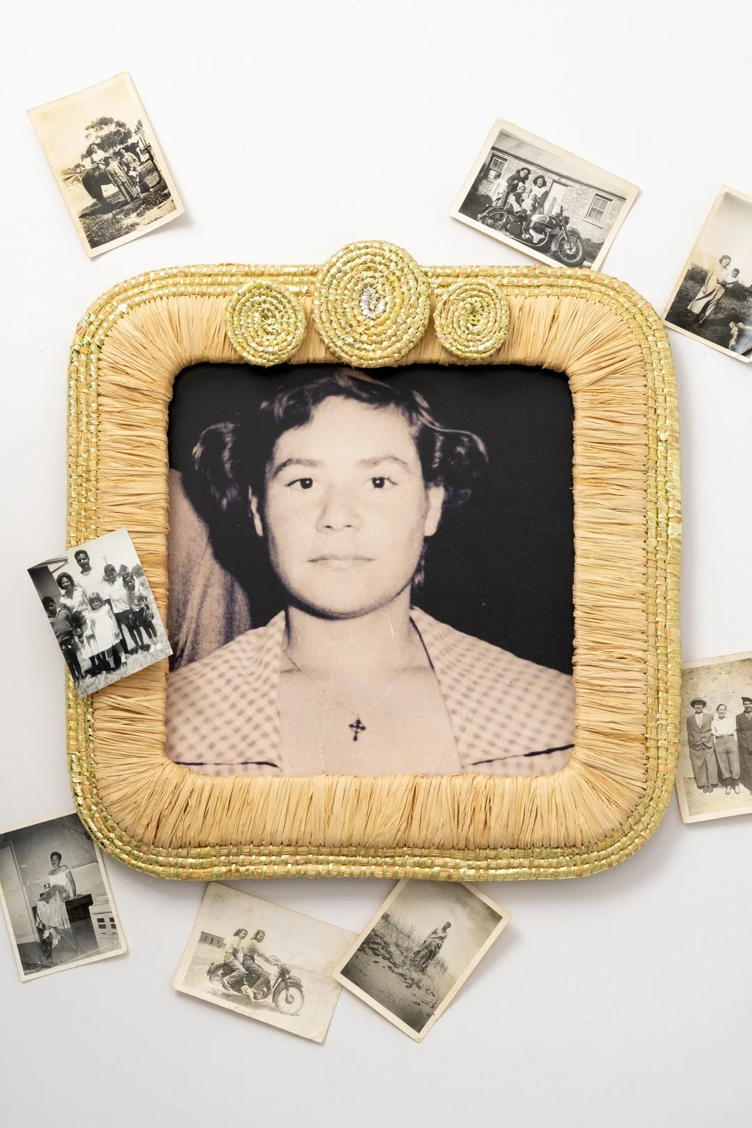 So I created woven frames to replicate the grandness of these golden frames place myself in it. I soon realised I needed jewels, I couldn’t have a portrait without jewels.