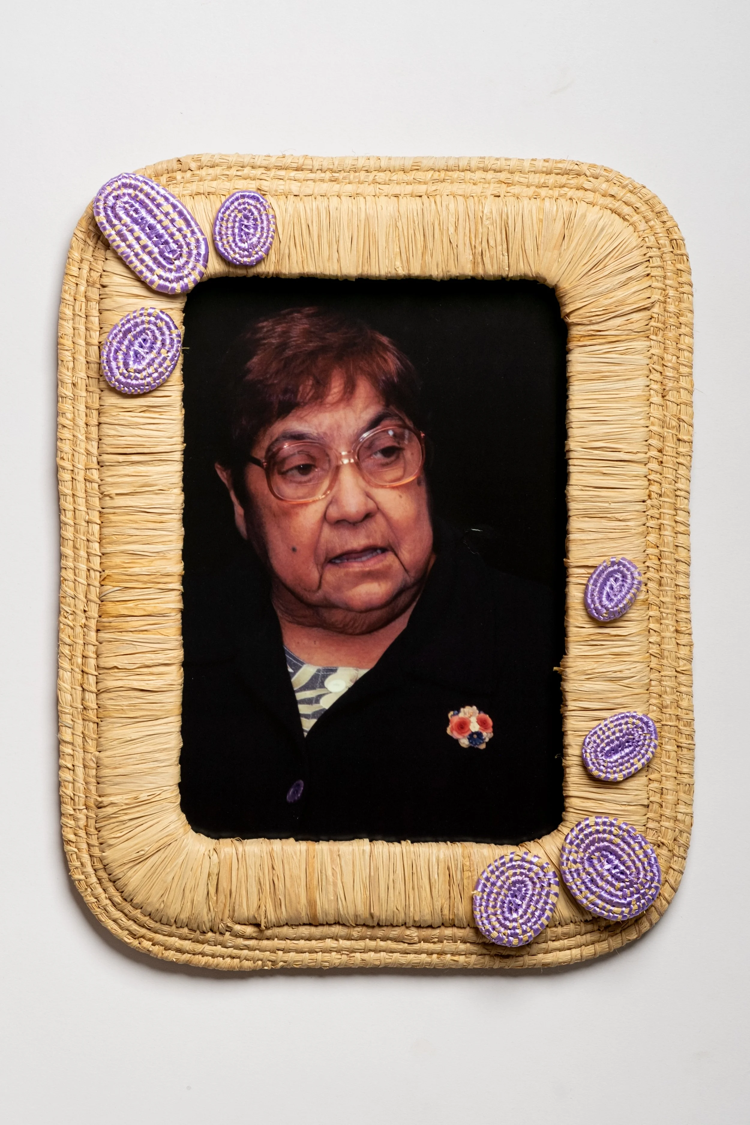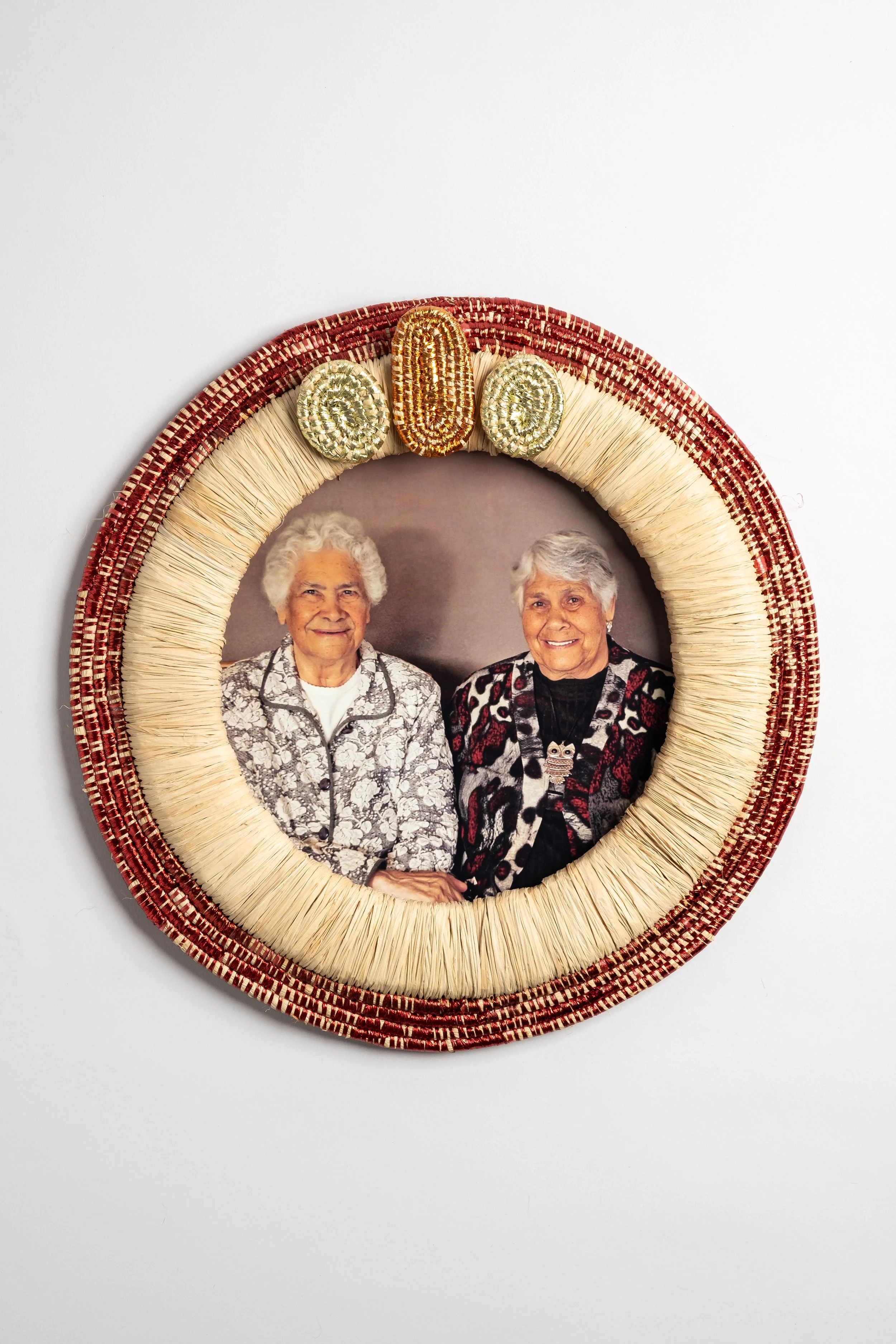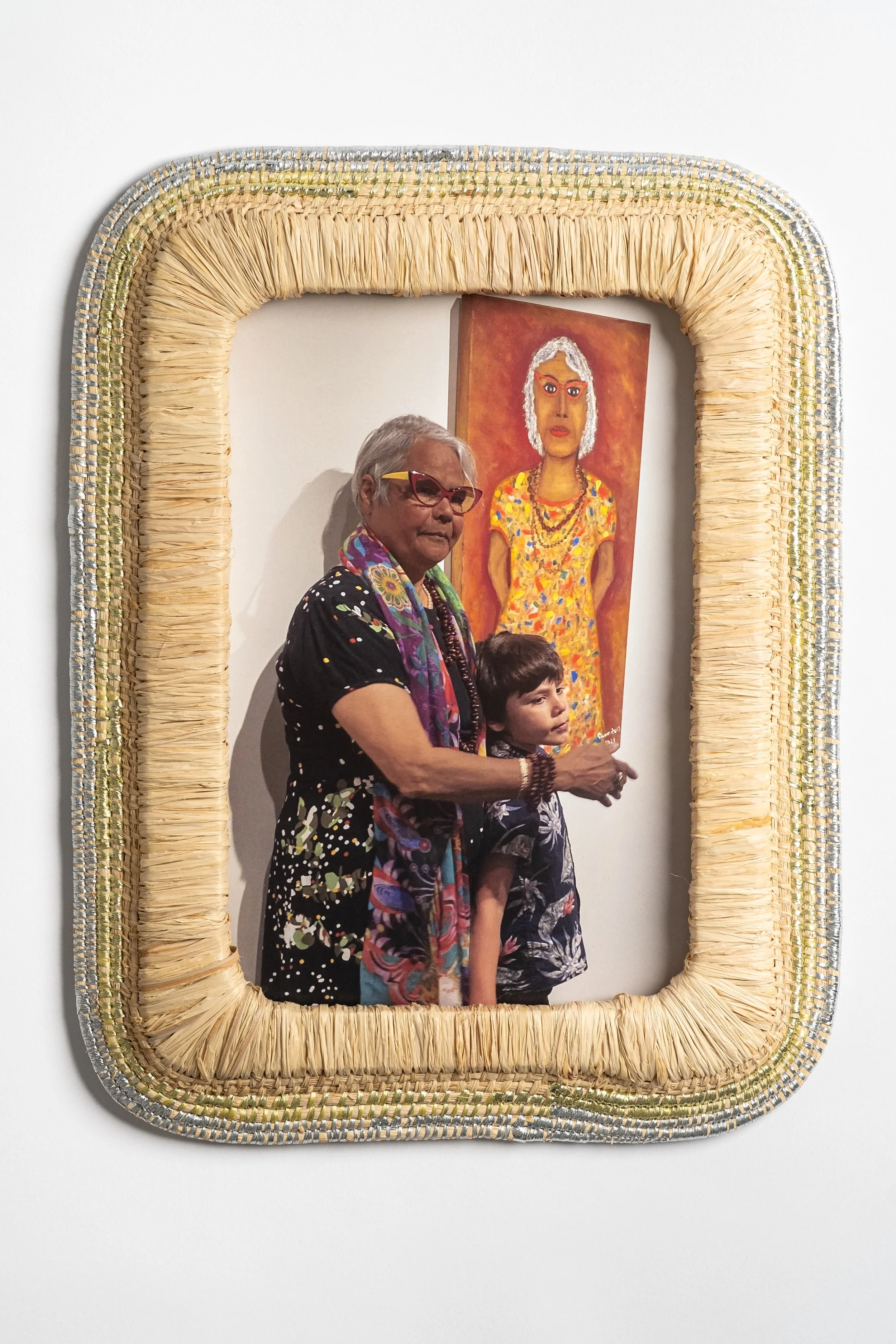 Amy Levai and Dr Lowitja O’Donoghue, 2023, raffia, ribbon and photograph