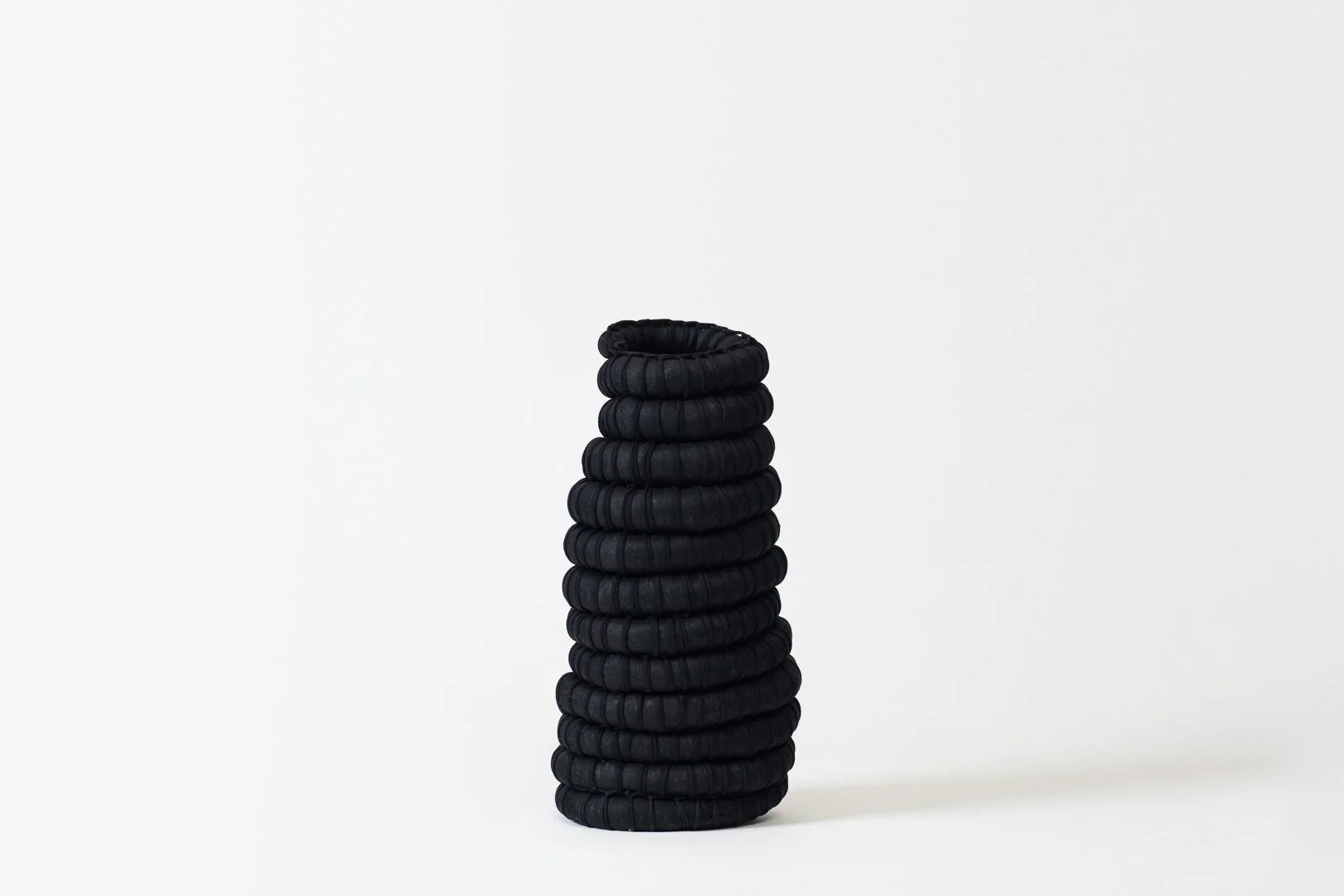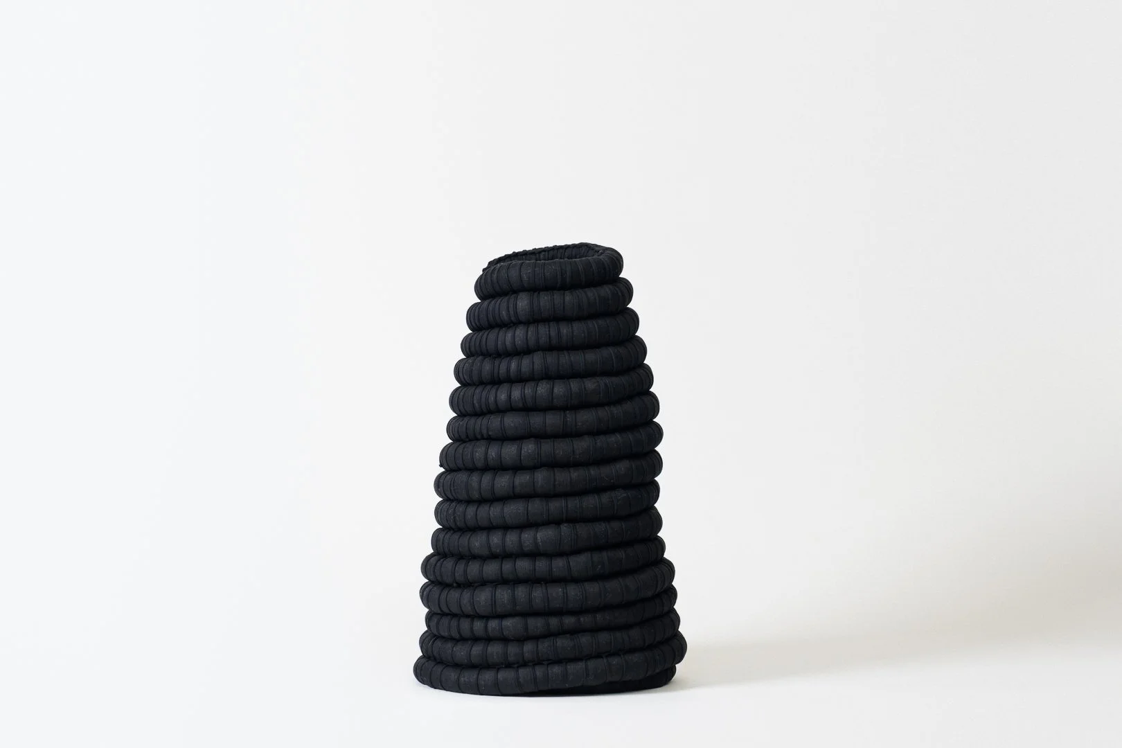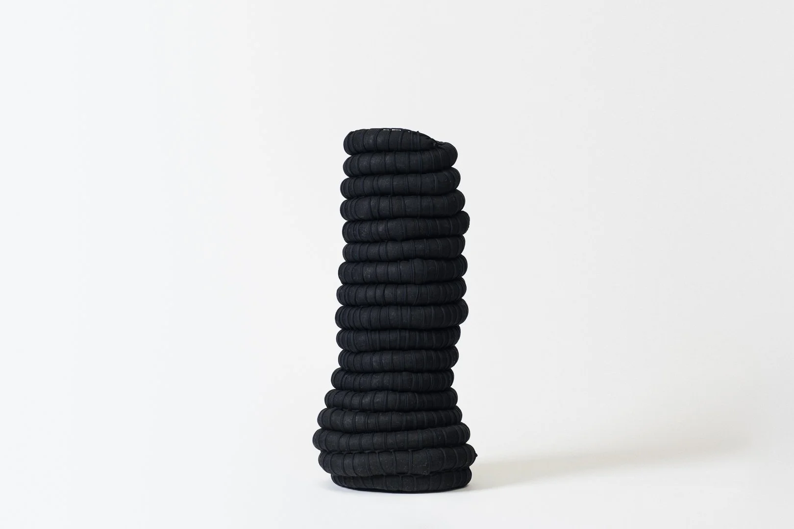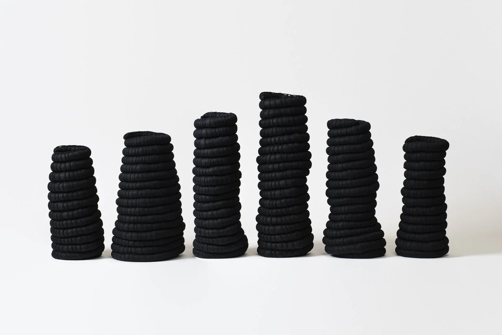Each form is created using a traditional Ngarrindjeri weaving stitch. The black fabric symbolises grief, mourning, and strength. Though soft, the vessels carry the weight of loss, memory, and survival.