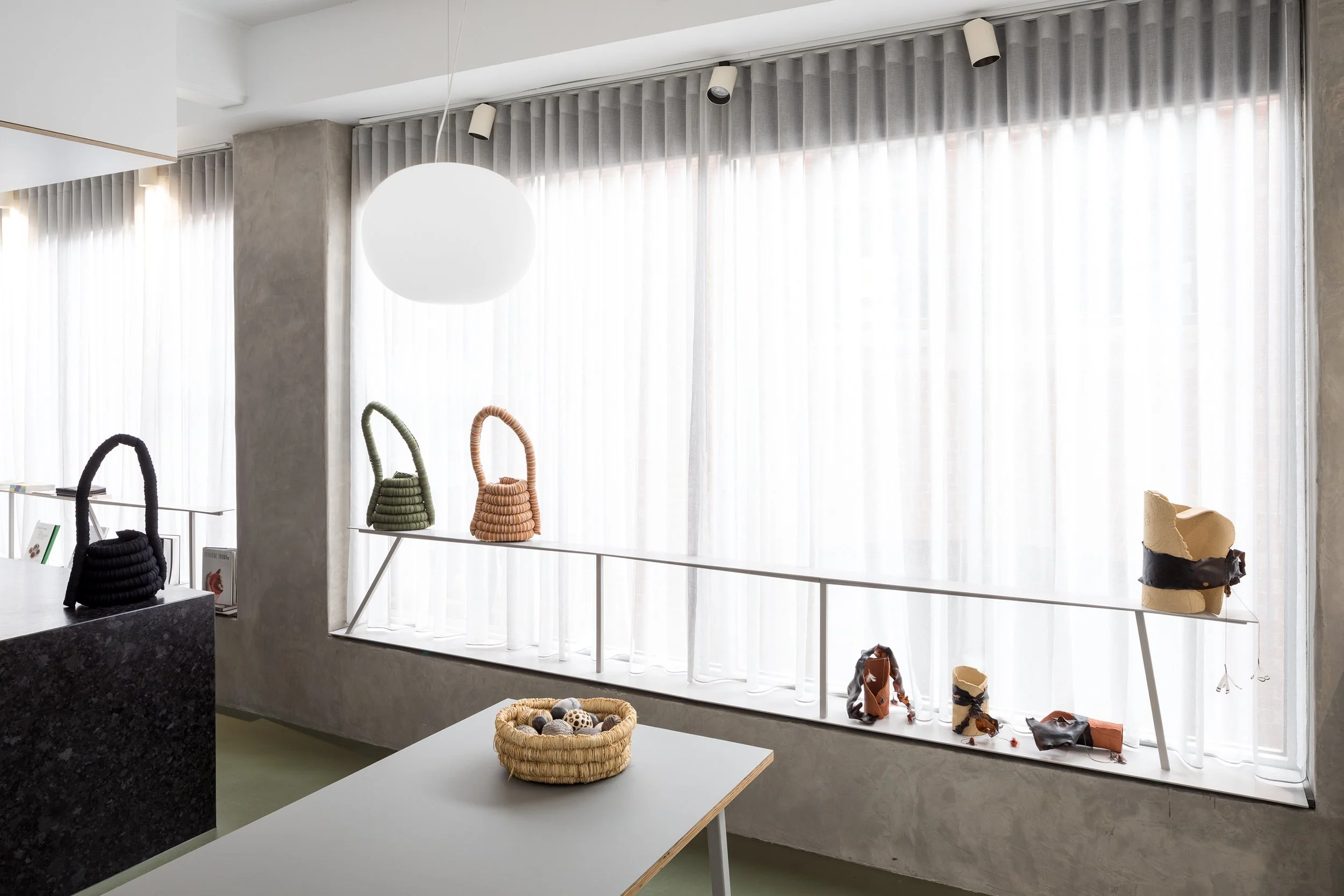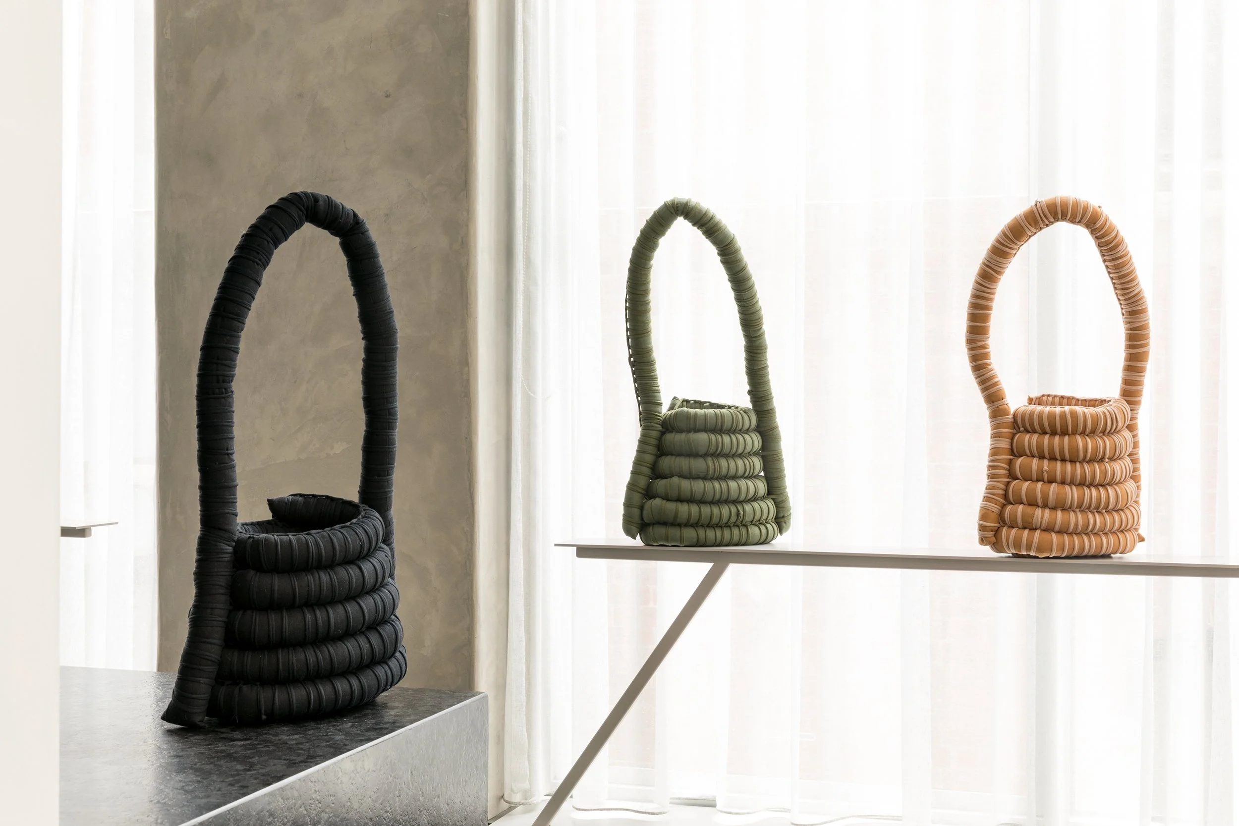 Curated to capture an unseen element present in their work, the exhibition explores the hidden motivation compelling each artist to create and innovate. This is shown through experimental printmaking techniques, body adornment that brings new life into materials and raw ochres that embody Country itself. Through the stitching, binding, holding, and shaping an interconnectedness is formed. shared:ground aims to understand these threads of connection and celebrates the unique methods of creation that each artist holds.
