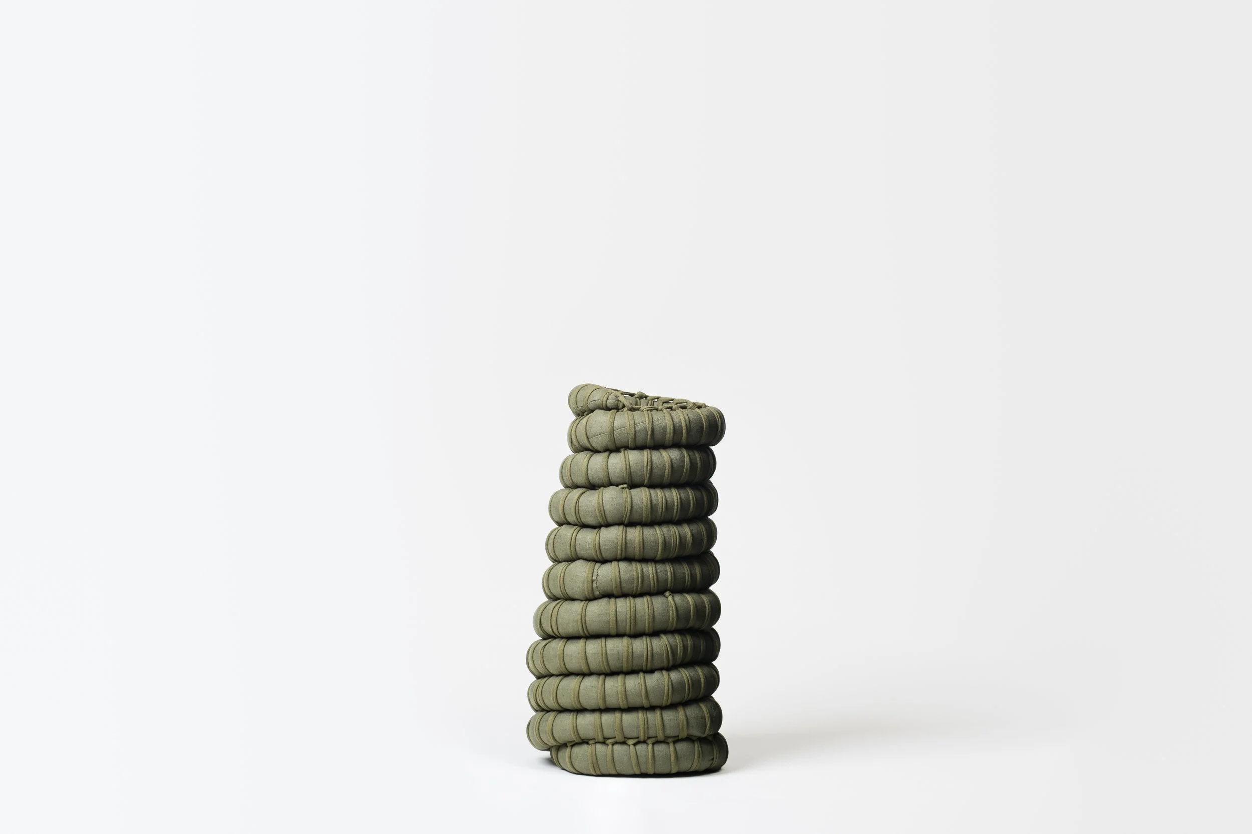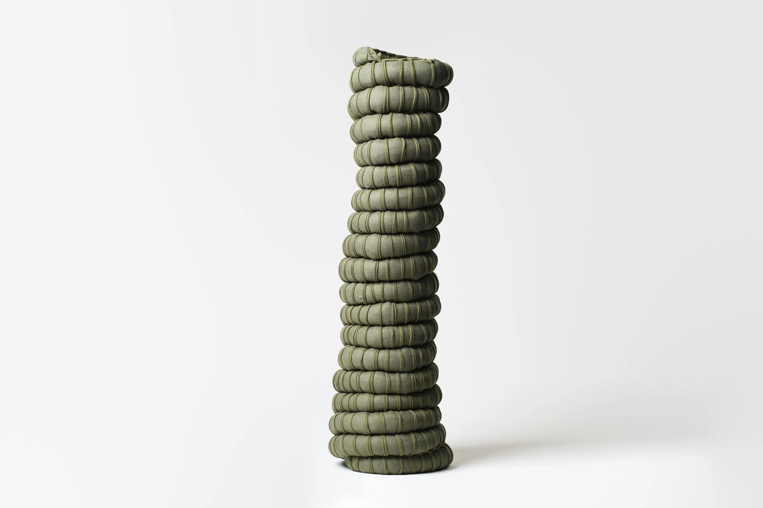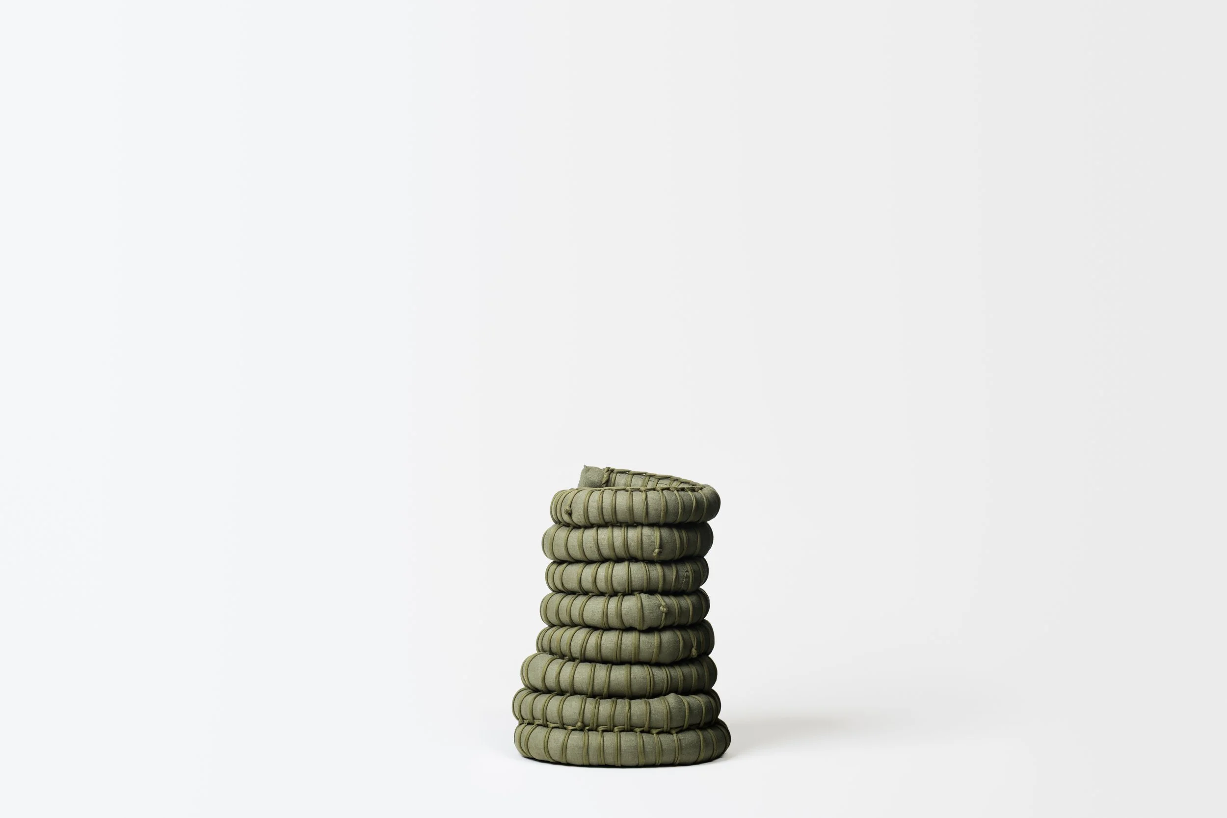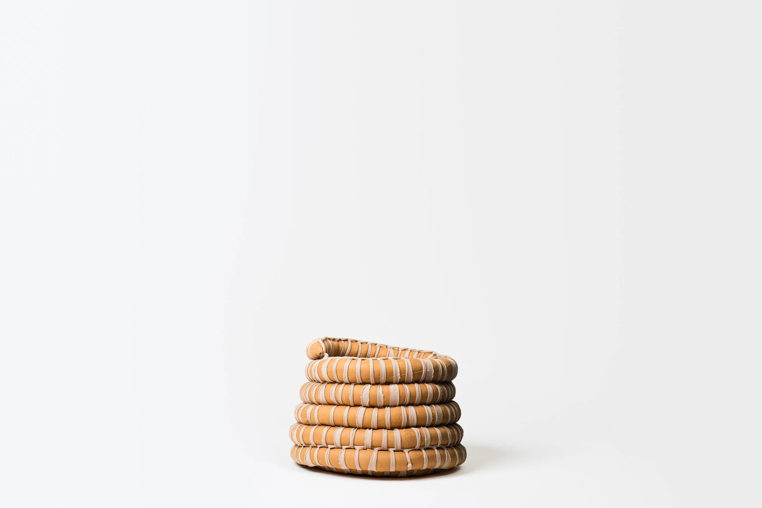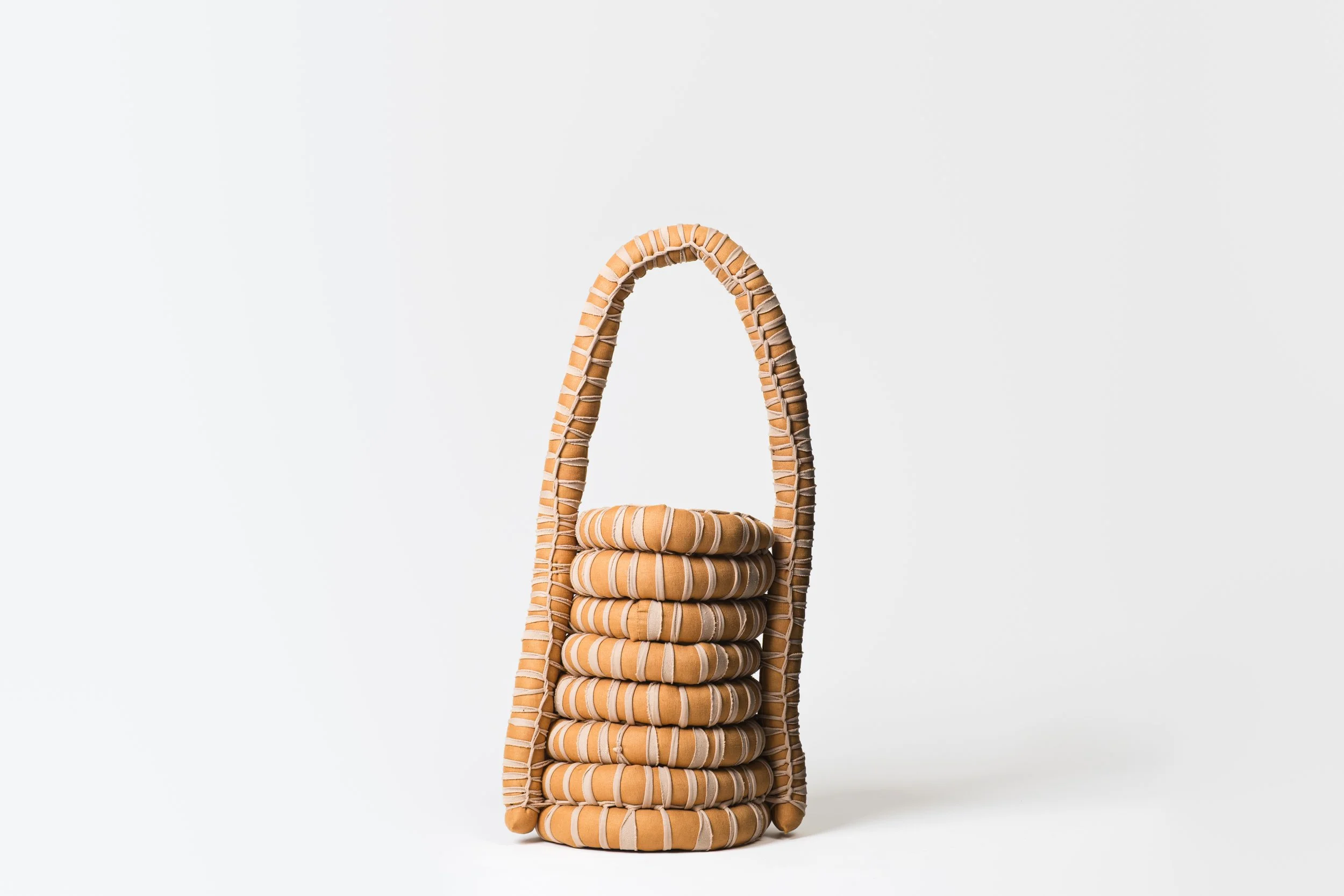 Carly Tarkari Dodd’s latest work features seven chunky woven soft sculptures that speak to the survival and revival of traditional weaving practices. Once lost for generations in her family, the practice has re-emerged through reconnection and cultural remembering. Each form is stitched using methods that mirror the way rushes were traditionally woven honouring ancestral technique while embracing material experimentation. The works celebrate weaving not only as a method of making but as a living act of cultural resilience. Over time, materials may change, but the significance of the stitch remains. For Dodd, as long as the stitch endures, so do the stories, knowledge, and people it connects.
